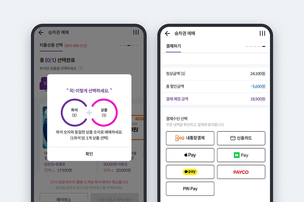 - 할인 옵션 선택 : 할인 옵션을 선택합니다. (예: 어린이 할인, 단체 할인 등)
